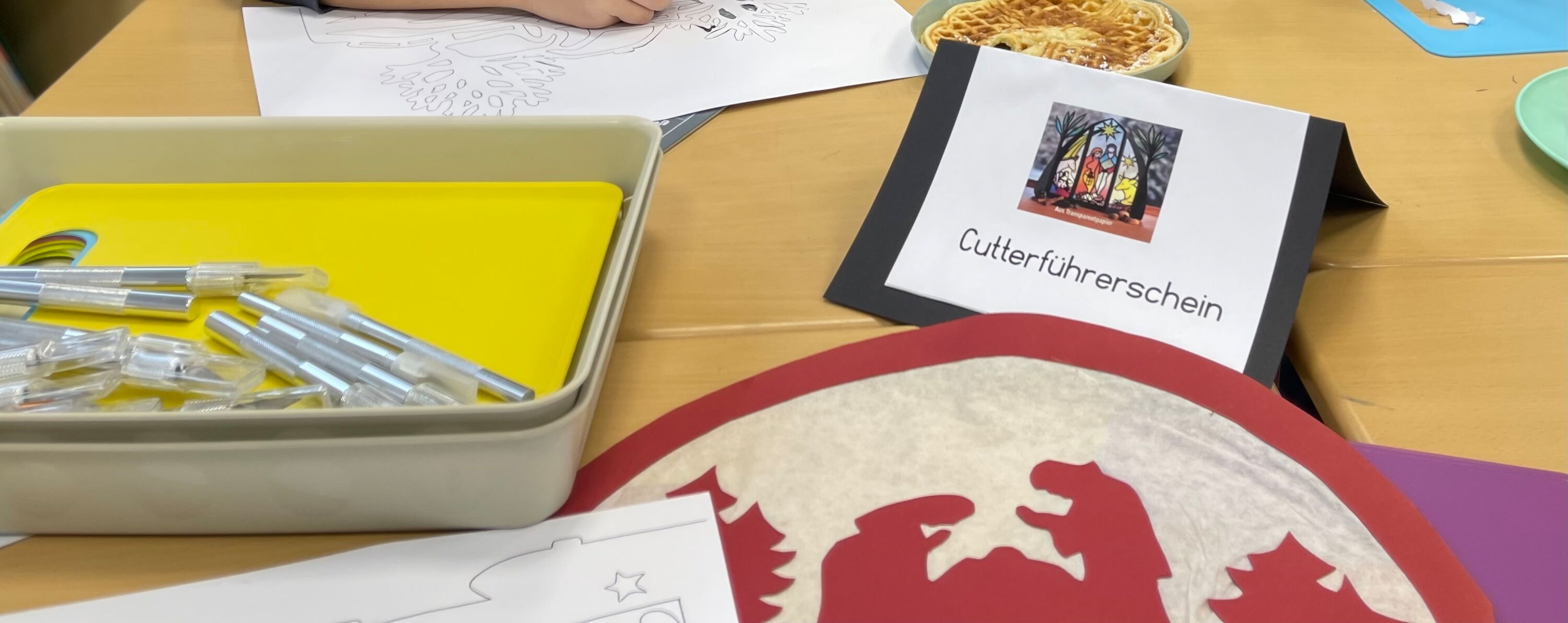 Unsere Schule wurde weihnachtlich geschmückt. Mit Schere und Klebestift, Laubsäge, Cutter, Filzwolle und Kreidestift haben viele fleißige Hände unsere Schule vorweihnachtlich gestaltet.